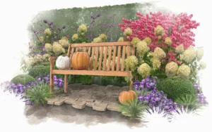 PROJEKT RABATY: Jesienna rabata z pięknotką.