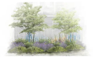 Gotowy projekt rabaty ogrodowej zainspirowany ogrodami słynnych wystaw Chelsea Flower. Oparty głównie o byliny zestaw, sprawdzi się na przepuszczalne glebie, stanowisku słonecznym lub delikatnie półcienistym.
